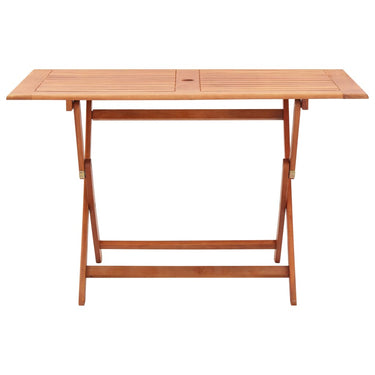 Donnez à votre terrasse, votre arrière-cour et tout autre espace extérieur un bel aspect naturel avec notre ensemble de salle à manger rustique et élégant. L'ensemble de salle à manger est en bois d'eucalyptus massif, résistant aux intempéries et durable pendant des années d'utilisation. De plus, présentant une forme ergonomique, les chaises de salle à manger offriront un confort d'assise optimal. La surface à finition à l'huile est également facile à nettoyer avec un chiffon humide. Grâce à leur conception pliable, cet ensemble de mobilier de jardin peut être plié pour économiser de l'espace lorsqu'il n'est pas utilisé.
