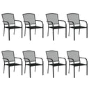 Cet ensemble de salle à manger de jardin tendance, au design élégant et contemporain, est un choix parfait pour vous détendre dans votre jardin. Matériau robuste : l'acier est un matériau exceptionnellement dur et solide. Il offre robustesse et stabilité. Le revêtement par poudre et le revêtement électronique de l'acier créent une couche protectrice contre l'usure et la corrosion.Cadre stable : le cadre en acier enduit de poudre et e-coated assure la robustesse et la stabilité de l'ensemble de salle à manger.Fonction empilable : les chaises de salle à manger sont empilables pour économiser de l'espace lorsqu'elles ne sont pas utilisées.Table pratique : le dessus robuste de la table à manger est parfait pour placer des repas, des boissons et d'autres objets décoratifs.Pieds élégants : les pieds incurvés de la table à manger de jardin créent un air d'élégance tout en assurant la stabilité.Design en maille : l'ensemble de salle à manger d'extérieur avec un design en maille a un aspect simple et intemporel et convient aux balcons, porches, jardins, terrasses, etc. Remarque :Pour que vos meubles d'extérieur restent beaux, nous vous recommandons de les protéger avec une housse imperméable.
