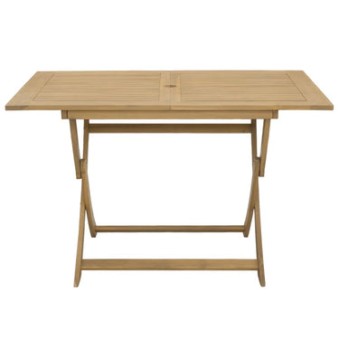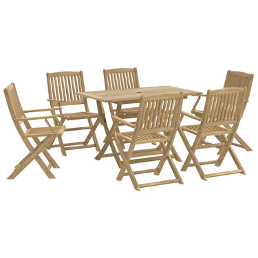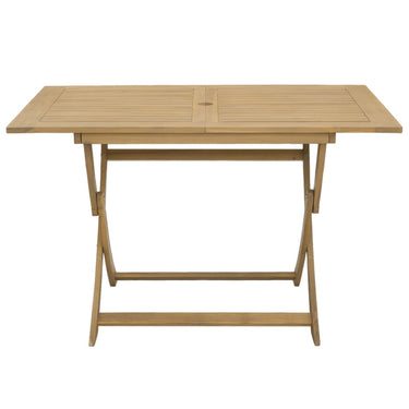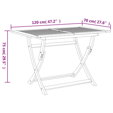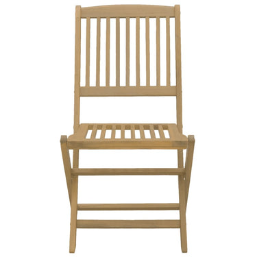 Profitez d'un bon repas ou d'un thé l'après-midi dans votre espace extérieur avec cet ensemble à manger de jardin en bois ! Bois d'acacia massif : l'ensemble de salle à manger d'extérieur est fabriqué en bois d'acacia massif pour plus de robustesse et de stabilité. Le bois d'acacia massif est un beau matériau naturel. Le bois d'acacia a un grain droit et les nœuds donnent au matériau son aspect caractéristique et rustique.Une expérience d'assise confortable : dotée d'un dossier, la chaise d'extérieur vous offre un confort optimal.Design à lattes : le design à lattes de l'ensemble de salle à manger de terrasse empêche l'accumulation de l'eau, ce qui permet de garder le siège au sec et d'éviter un pourrissement inutile.Dessus de table robuste : la table d'extérieur offre un excellent support pour accueillir vos boissons, collations, corbeilles de fruits et vos décorations préférées.Design pliable : la table et les chaises de salle à manger d'extérieur peuvent être facilement repliées lorsqu'elles ne sont pas utilisées pour faciliter le rangement et le transport. Bon à savoir :Pour que vos meubles d'extérieur restent beaux, nous vous recommandons de les protéger avec une housse imperméable.