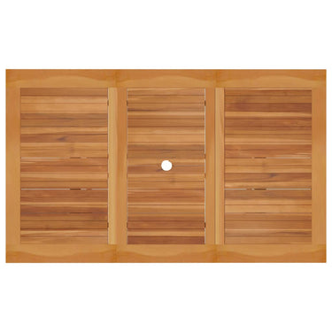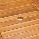 Cet ensemble de jardin en bois est parfait pour vos repas ou pour vous détendre dans le jardin ou sur le patio. Il est également idéal pour une utilisation à l'intérieur. Fabriquée en bois dur de teck extrêmement durable, cette pièce de meuble en teck a été chevronnée, séchée au four puis finement poncée pour lui donner un aspect très lisse. Le bois de teck est connu pour sa résistance exceptionnelle aux intempéries, ce qui le rend bien plus adapté aux meubles de jardin que tout autre type de bois. Le bois de teck est le choix idéal si vous souhaitez acheter une pièce de meubles de jardin durable. L’ensemble est appliqué avec une belle finition pour donner au bois une couleur chaude. La table comprend un trou pour un parasol afin de vous protéger du soleil. Les sièges et les dossiers des chaises peuvent bien s’adapter à votre corps. Avec un design pliable, les chaises peuvent être pliées pour économiser de l’espace lorsqu'elles ne sont pas utilisées. Elles sont également légères et faciles à déplacer. L’ensemble de meubles vous offre un confort et une grande commodité pour passer du temps avec votre famille et vos amis. De plus, cet ensemble est également facile à nettoyer avec un chiffon humide.