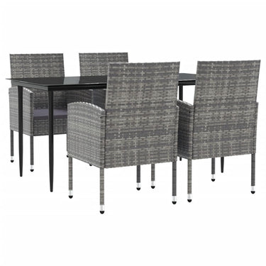 Profitez d'un bon repas ou d'un thé l'après-midi dans votre espace extérieur avec cet ensemble de salle à manger de jardin ! Ayant un design élégant, il deviendra le point central de votre jardin et de votre terrasse ! Matériau haut de gamme : la résine tressée est un matériau de résistance exceptionnelle et durable dans différentes conditions météorologiques.Cadre robuste : cette table et cette chaise de jardin sont construites avec un cadre en acier, ce qui assure robustesse et stabilité.Dessus de table pratique : le dessus lisse de la table à manger est en verre trempé, facile à nettoyer avec un chiffon humide. De plus, le dessus robuste est parfait pour placer des repas, des boissons et d'autres objets décoratifs.Expérience de siège confortable : les coussins de siège épais et amovibles sont inclus pour votre confort. Bon à savoir :Pour que vos meubles d'extérieur restent beaux, nous vous recommandons de les protéger avec une housse imperméable.