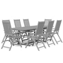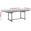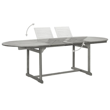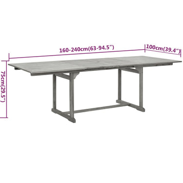 Profitez d'un bon repas en plein air avec votre famille et vos amis avec cet ensemble de salle à manger de jardin en bois ! Matériau de qualité supérieure : cet ensemble de salle à manger est fabriqué en bois d'acacia massif, un bois dur tropical, qui résiste aux intempéries et est durable pour des années d'utilisation. La surface à finition à l'huile est facile à nettoyer avec un chiffon humide.Table extensible : la table à manger est extensible, répondant à vos différents besoins.Chaise réglable et pliable : la chaise d'extérieur peut être réglée sur 5 positions, vous offrant un confort d'assise optimal. Ces chaises de salle à manger peuvent également être pliées pour économiser de l'espace lorsqu'elles ne sont pas utilisées. Remarque :Afin de prolonger la durée de vie de votre mobilier d'extérieur, nous vous recommandons de le protéger avec une housse imperméable.