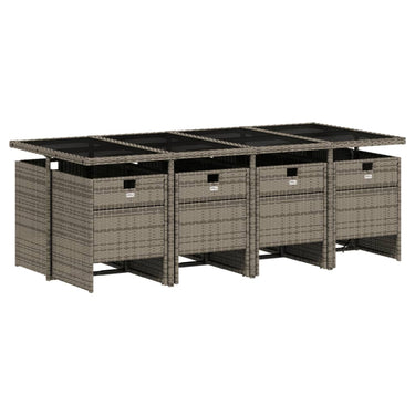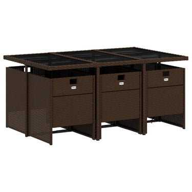 Ensemble à manger de jardin et coussins 9 pcs marron poly rotin