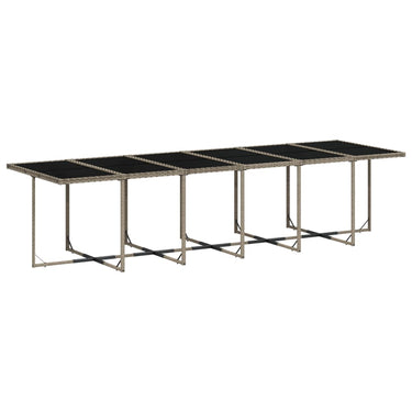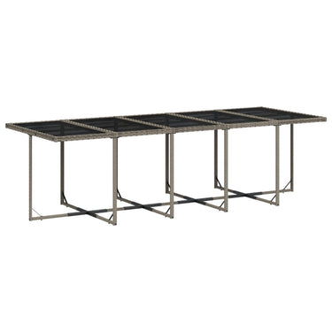 Cet ensemble de salle à manger de jardin est un excellent choix pour les repas en plein air ou pour vous détendre dans le jardin, dans l'arrière-cour ou sur la terrasse. Matériau durable : la résine tressée, également connue sous le nom de poly rotin, est un matériau synthétique solide et nécessitant peu d'entretien qui ressemble au rotin naturel. Il est léger, facile à nettoyer et couramment utilisé pour les meubles d'extérieur en raison de sa durabilité et de ses propriétés de résistance aux intempéries.Rangement compact : ces chaises sont dotées d'un dossier rabattable, ce qui permet de les ranger facilement sous la table. Une fois pliées, elles se rangent parfaitement sous la table, formant un cube peu encombrant. Expérience d'assise confortable : ce mobilier d'extérieur, doté de coussins épais, offre une expérience d'assise confortable.Housse amovible et lavable : ces coussins de siège sont dotés de housses amovibles pour un lavage et un entretien faciles.Dessus en verre : le dessus de la table d'extérieur est fabriqué en verre trempé solide et durable, ce qui le rend facile à nettoyer avec un chiffon humide et ajoute une touche d'élégance à votre espace extérieur. Bon à savoir : Pour que vos meubles d'extérieur restent beaux, nous vous recommandons de les protéger avec une housse imperméable.