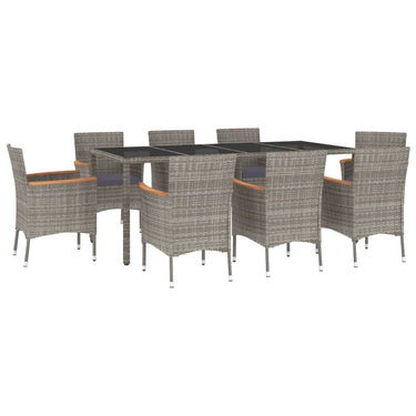 Ensemble à manger jardin et coussins 7 pcs gris rotin