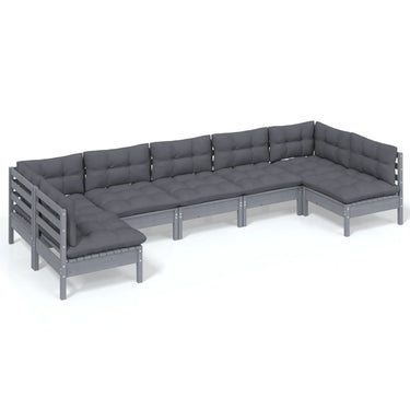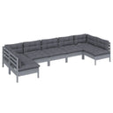 Salon de jardin 7 pcs avec coussins crème bois de pin massif