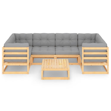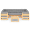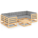 Salon de jardin 7 pcs avec coussins noir bois de pin massif