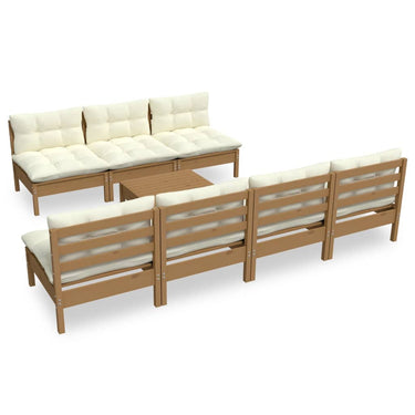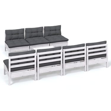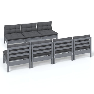 Salon de jardin 8 pcs avec coussins gris Bois de pin
