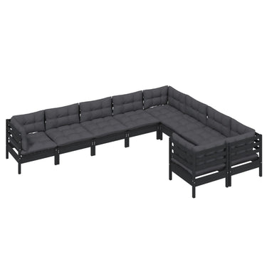 Salon de jardin 9 pcs avec coussins blanc bois de pin