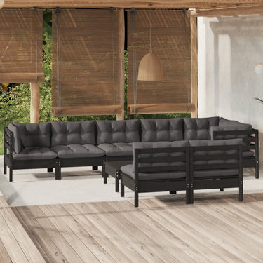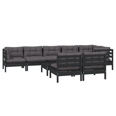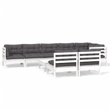Salon de jardin 9 pcs avec coussins blanc bois de pin massif