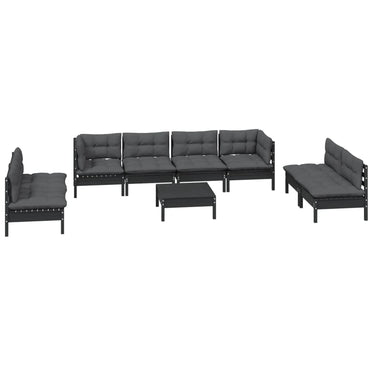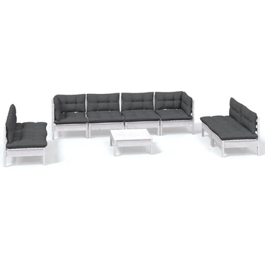 Salon de jardin 9 pcs avec coussins bois de pin massif