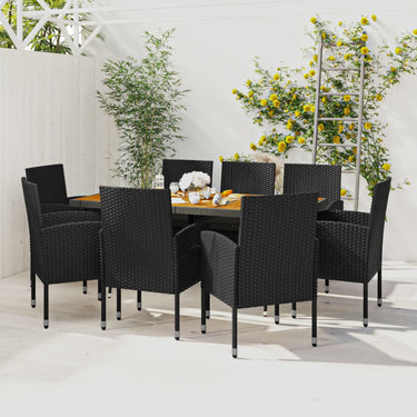 Ensemble à manger d'extérieur 9 pcs Résine tressée Noir