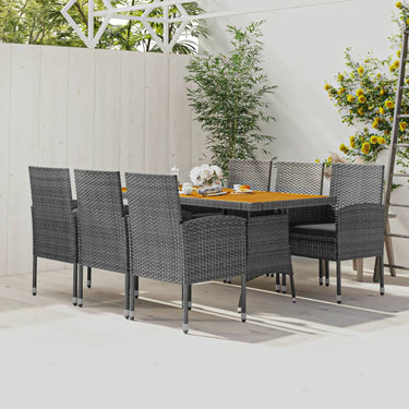 Ce mobilier à dîner d'extérieur, au design élégant, est un excellent choix pour vos repas ou vos moments de détente sur votre patio ou dans votre jardin. Matériau de qualité supérieure : l'ensemble de salle à manger de jardin est conçu avec de la résine tressée imperméable, ce qui le rend facile à nettoyer, résistant à l'usure et adapté à une utilisation quotidienne à l'extérieur.Cadre robuste : doté d'un cadre en acier, la table et les chaises sont durables et stables.Chaises confortables : les chaises de jardin sont conçues dans une forme plus ergonomique pour un confort maximal. Des coussins sont inclus pour un soutien supplémentaire.Table pratique : le dessus de table est en bois d'acacia solide pour un support résistant, facile à nettoyer et à entretenir. Remarque :Afin de prolonger la durée de vie de votre mobilier d'extérieur, nous vous recommandons de le protéger avec une housse imperméable.