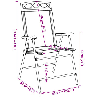 Ces chaises de jardin ont un design élégant et seront un excellent choix pour les repas en plein air dans le jardin ou sur la terrasse. Durable et longue durée de vie : le tissu textilène est apprécié pour sa durabilité, résistance à l'eau et à la décoloration, facilité d'entretien et protection contre les rayons UV et la moisissure, ce qui en fait un choix idéal pour le meuble d'extérieur et les structures d'ombrage.Robuste et stable : le cadre en acier impressionne par sa solidité, sa durabilité et sa résistance à la corrosion, ce qui en fait un choix idéal pour diverses applications, y compris la fabrication et la construction de meubles.Facile à transporter et à ranger : le siège de jardin est pliable et compact, ce qui permet de le ranger et de le transporter facilement. C'est un choix idéal pour les activités de plein air.Une expérience d'assise confortable : dotée d'accoudoirs et d'un dossier, la chaise d'extérieur vous offre un confort optimal. Bon à savoir :Pour que vos meubles d'extérieur restent beaux, nous vous recommandons de les protéger avec une housse imperméable.