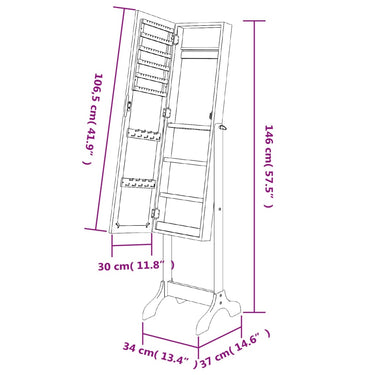 Ce miroir sur pied au design élégant est un excellent supplément décoratif à votre couloir, chambre à coucher, dressing, vestiaire, etc. Matériau durable : le bois d'ingénierie est d'une qualité exceptionnelle avec une surface lisse et présente également résistance, stabilité et résistance à l'humidité.Image claire : la face du miroir en verre offre une image claire. Ainsi, vous pouvez profiter d'un reflet magnifique et naturel lorsque vous vous tenez devant le miroir de courtoisie.Espace de rangement supplémentaire : ce miroir de sol offre un grand espace de rangement derrière le miroir pour un accès facile à vos objets.Décoration unique : le miroir sur pied apporte instantanément une touche d'élégance, de glamour et de romantisme à votre espace de vie intérieur.