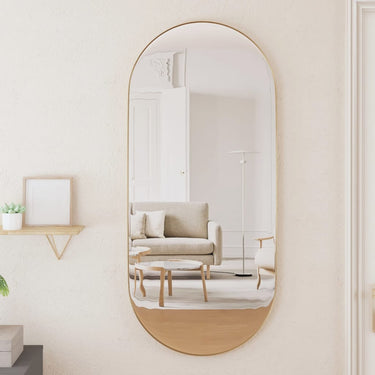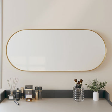 Spiegel wandgemonteerd 15x40 cm ovaal goudkleurig