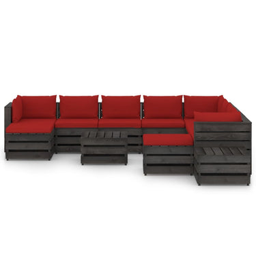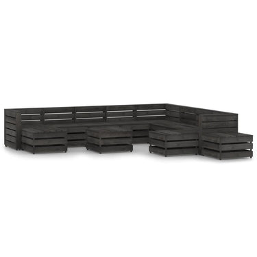 Salon de jardin 12 pcs avec coussins gris bois imprégné