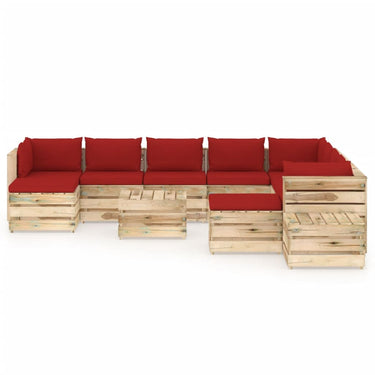 Ensemble de salon 12 pièces avec coussins en bois imprégné