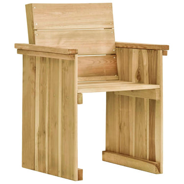 Notre ensemble de salle à manger au design simple mais intemporel deviendra le point central de votre jardin, terrasse ou patio. Fabriquée en pin massif imprégné, la table et les chaises sont imputrescibles et très durables et conviennent à une utilisation extérieure. La table est facile à nettoyer avec un chiffon humide. Les accoudoirs contribuent au confort d'assise supplémentaire. Les articles sont faciles à assembler. Veuillez noter que le bois est un produit naturel et peut présenter des imperfections.