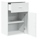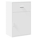 Voulez-vous que votre espace soit bien rangé et organisé ? Ce meuble de rangement en bois est la solution idéale pour vous ! Matériau robuste et durable : le bois d'ingénierie est d'une qualité exceptionnelle avec une surface lisse et présente également résistance, stabilité et résistance à l'humidité.Grand espace de rangement : ce buffet dispose 1 tiroir et 2 compartiments, offrant un espace de rangement suffisant pour ranger vos objets de manière ordonnée. Dessus robuste : l'armoire latérale a un dessus robuste, parfait pour y placer vos décorations préférées. Attention :Pour éviter qu'il ne bascule, ce produit doit être utilisé avec le dispositif de fixation murale fourni.