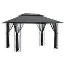 Vous souhaitez profiter d'un moment de détente agréable avec votre famille et vos amis par une chaude journée d'été ou un jour de pluie ? Ce belvédère tendance est exactement ce qu'il vous faut ! Cadre en acier : l'acier est un matériau exceptionnellement dur et résistant. Il offre robustesse et stabilité. Espace spacieux : ce belvédère de jardin est suffisamment spacieux pour réunir votre famille et vos amis à l'intérieur sans vous sentir à l'étroit.Toit à deux niveaux : le toit à double étage avec revêtement PA est résistant à l'eau et assure une excellente circulation de l'air pour garantir la stabilité en cas de vent.Parois latérales en maille : le tissu en maille avec fermetures éclair est facile à ouvrir et à fermer, vous protégeant des rayons du soleil et des petits insectes gênants tout en assurant une bonne ventilation et une vision claire.Larges applications : cette tonnelle de fête est parfaite pour les réunions de famille, les pique-niques, les fêtes, les mariages, etc. et ajoute une touche d'élégance à votre jardin. Bon à savoir :Pour faciliter au maximum le montage, chaque produit est livré avec des instructions.