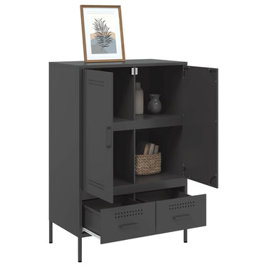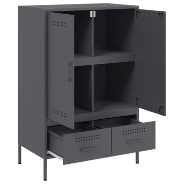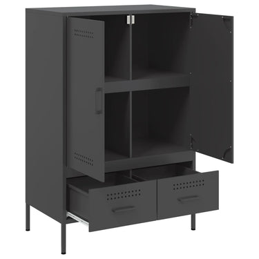 Ce buffet haut robuste au style industriel constitue un ajout intemporel et moderne à votre salon ou votre chambre. Matériau stable : Le cadre du buffet est en acier laminé à froid. L'acier laminé à froid est un type d'acier à faible teneur en carbone produit par une méthode de « laminage à froid » et traité à des températures ambiantes proches de la normale. L'acier laminé à froid présente une surface plus lisse, une plus grande résistance et une plus grande précision.Grand espace de rangement : cette armoire offre suffisamment d'espace de rangement pour garder vos magazines, livres, DVD, télécommande et autres petits objets bien organisés et à portée de main.Pieds à vis réglables : cette armoire est équipée de quatre pieds à vis réglables pour compenser les inégalités du sol, assurant stabilité et équilibre.Porte pratique : la porte permet de maintenir un espace propre et organisé en dissimulant les petits objets essentiels et le désordre qui se trouve derrière.Facile à nettoyer : l'armoire en métal est facile à nettoyer à l'aide d'un chiffon humide et nécessite peu d'entretien. Attention :Pour éviter qu'il ne bascule, ce produit doit être utilisé avec le dispositif de fixation murale fourni.