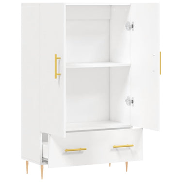 Cherchez-vous un buffet haut de gamme stylé ? Ce buffet haut ajoute un charme moderne à votre intérieur existant ! Matériau durable : le bois d'ingénierie est d'une qualité exceptionnelle avec une surface lisse et présente également résistance, stabilité et résistance à l'humidité. Pieds en métal : les pieds en métal ajoutent un style moderne et calme à votre intérieur tout en assurant la stabilité. Grand espace de rangement : le buffet offre un grand espace de rangement pour garder vos différents articles essentiels quotidiens bien organisés et facilement accessibles. Dessus stable et robuste : le dessus de l'armoire de rangement est parfait pour exposer vos objets décoratifs, cadres photo et plantes en pot. Design pratique : gardez vos essentiels à l'abri de la poussière en les cachant derrière les portes. De plus, les poignées facilitent l'ouverture de l'armoire latérale. Attention :Pour éviter qu'il ne soit renversé, ce produit doit être utilisé avec le dispositif de fixation au mur fourni.