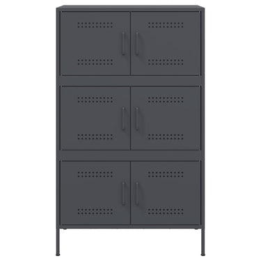 Ce buffet haut robuste de style industriel constitue un supplément intemporel à votre salon ou à votre chambre à coucher. Cadre robuste et stable : l'acier est solide, stable et durable, ce qui en fait un choix idéal pour un large éventail d'applications, de la fabrication de meubles à la construction.Grand espace de rangement : cette armoire haute est dotée de 6 compartiments, ce qui offre un grand espace de rangement pour garder vos différents articles essentiels quotidiens bien organisés et facilement accessibles. Facile à nettoyer : l'armoire est facile à nettoyer à l'aide d'un chiffon humide et nécessite peu d'entretien.Porte pratique : gardez votre espace sans encombrement en cachant vos articles essentiels derrière les portes de l'armoire de rangement.Attention :Pour éviter qu'il ne bascule, ce produit doit être utilisé avec le dispositif de fixation murale fourni.