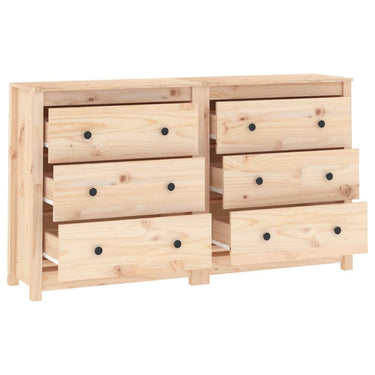 Profitez d'un salon bien rangé avec ce buffet en bois ! Ce buffet pratique répondra à vos différents besoins et constituera un complément idéal à votre pièce. Bois de pin massif : le bois de pin massif est un matériau naturel magnifique. Le bois de pin a un grain droit et les nœuds donnent au matériau son aspect caractéristique et rustique.Grand espace de rangement : l'armoire offre un grand espace de rangement pour garder vos différents articles essentiels quotidiens bien organisés et facilement accessibles.Dessus robuste : le dessus robuste de cette armoire est idéal pour exposer des objets décoratifs, des cadres photo ou des plantes en pot. Attention :Afin d'éviter qu'il ne bascule, ce produit doit être utilisé avec le dispositif de fixation murale fourni. Remarque :Chaque produit est livré avec un manuel de montage dans la boîte pour un montage facile.Le buffet est composé de deux petits buffets.