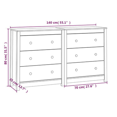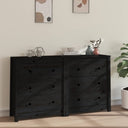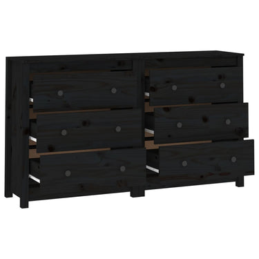 Buffet Noir 140x35x80 cm Bois massif de pin