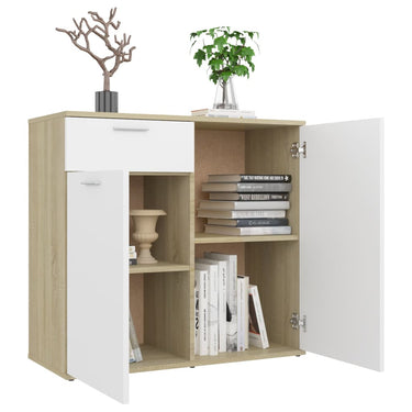 Ce buffet doté d'un design minimaliste sera un ajout pratique mais également très décoratif à votre maison. Avec 2 portes et un tiroir, le buffet offre un grand espace de rangement pour les livres, les appareils multimédias et d'autres objets. Le dessus robuste est idéal pour exposer des objets décoratifs, des cadres photo ou des plantes en pot. De plus, cette armoire est facile à nettoyer avec un chiffon humide.