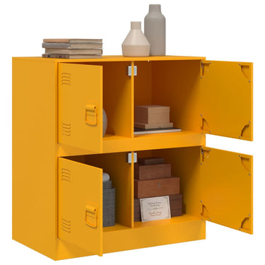 Ce buffet robuste est conçu pour être un point de mire de votre pièce avec un design tendance mais pratique. Matériau stable : Le cadre du buffet est en acier laminé à froid. L'acier laminé à froid est un type d'acier à faible teneur en carbone produit par une méthode de « laminage à froid » et traité à des températures ambiantes proches de la normale. L'acier laminé à froid présente une surface plus lisse, une plus grande résistance et une plus grande précision.Grand espace de rangement : ce buffet offre un espace de rangement pratique pour garder vos magazines, livres, télécommandes et autres petits objets bien organisés et à portée de main.Facile à entretenir : la table est facile à nettoyer à l'aide d'un chiffon humide et nécessite peu d'entretien.Poignée pratique : le buffet est livré avec 4 poignées qui facilitent l'ouverture et la fermeture de l’armoire tout en ajoutant une beauté supplémentaire. Attention :Pour éviter qu'il ne bascule, ce produit doit être utilisé avec le dispositif de fixation murale (non fourni).
