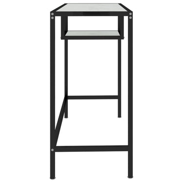 Comme tous les meilleurs designs, ce bureau d'ordinateur en verre simple mais élégant est épuré et peu encombrant. Il offre un grand espace de travail, ce qui en fait un meuble très pratique et polyvalent à utiliser à la maison ou au bureau. Fabriqué en verre et en fer, le bureau est extrêmement stable, solide et durable. De plus, le cadre en acier confère au bureau un style industriel, apportant une touche de charme unique à votre intérieur. Embellissez votre intérieur avec ce bureau moderne ! Attention : pour éviter qu'il ne soit renversé, ce produit doit être utilisé avec le dispositif de fixation au mur fourni.