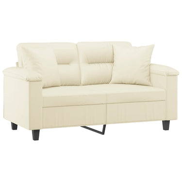 Ce canapé 2 places, qui se démarque par son design moderne et ses coussins décoratifs, sera un excellent endroit pour discuter, regarder la télévision ou simplement vous détendre. Similicuir durable : le similicuir de qualité supérieure est un matériau très durable. Il est résistant aux taches, ce qui le rend facile à nettoyer avec un chiffon humide. La surface lisse donne également un aspect luxueux et la beauté du cuir véritable.Cadre robuste et stable : le cadre en métal du canapé de salon assure robustesse et stabilité.Oreillers décoratifs avec inserts : ces oreillers décoratifs sont livrés avec des inserts en coton PP, vous n'avez donc pas besoin d'acheter des rembourrages.Expérience d'assise confortable : le canapé est très confortable avec les sièges, les accoudoirs et les oreillers de dossier bien rembourrés. En outre, les oreillers décoratifs peuvent ajouter un confort supplémentaire lorsque vous êtes assis ou allongé.