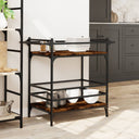 Créez une touche distinctive et vintage et ajoutez plus d'espace de rangement à votre cuisine avec ce chariot de cuisine ! Matériau durable : le bois d'ingénierie est d'une qualité exceptionnelle avec une surface lisse et se caractérise également par sa solidité, stabilité et résistance à l'humidité. Le cadre en acier assure la robustesse et la stabilité. Grand espace de rangement : ce chariot à légumes offre beaucoup d'espace de rangement pour garder les aliments, les bols, les assiettes, les recettes et autres ustensiles de cuisine à portée de main. Le porte-serviettes sur le côté permet de garder vos serviettes à portée de main. Facile à déplacer : ce chariot de cuisine est doté de 4 roues dont 2 sont verrouillables, ce qui lui permet de le déplacer en douceur et de le garer de manière stable à tout moment. Nombreuses applications : ce chariot d'organisation peut être placé dans la cuisine, le salon, la salle de bain, le bureau et d'autres endroits. Vous pouvez l'utiliser pour placer des articles quotidiens, des épices, des articles de toilette, des livres et d'autres objets pour améliorer la propreté de votre maison. Installation flexible : ce chariot de rangement de cuisine peut être utilisé de deux manières. Vous pouvez le poser sur le plancher avec des pieds réglables pour plus de stabilité sur les surfaces inégales ou fixer les roulettes pour un déplacement facile. Attention :Pour éviter qu'il ne bascule, ce produit doit être utilisé avec le dispositif de fixation murale fourni.