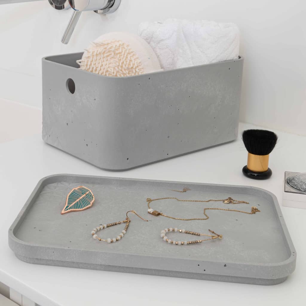 Ce coffret est un excellent ajout à votre salle de bain, chambre ou buanderie. Ces boîtes ont une nuance de gris froide, ce qui leur donne un aspect béton unique et de haute qualité. Les boîtes sont également dotées d'un couvercle pratique, afin que vous puissiez garder toutes vos affaires hors de vue et à l'abri de la poussière. De plus, chaque boîte de rangement est dotée de poignées pratiques et les boîtes sont empilables avec et sans couvercle.