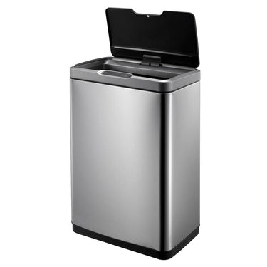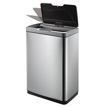 Cette poubelle à capteur Mirage argentée mate de la marque EKO est une poubelle élégante de 45 L. La poubelle est en acier inoxydable brossé avec un revêtement anti-empreintes digitales. Le couvercle donne accès à un compartiment spacieux avec un seau intérieur en plastique de 45 litres. Le mécanisme de capteur comprenant un interrupteur tactile permet au bac de s'ouvrir et de se fermer soit par un capteur, soit par un bouton tactile. Il garantit une utilisation hygiénique et ferme silencieusement le couvercle. De plus, les sacs poubelle sont faciles à changer grâce au couvercle amovible. Elle fonctionne sur six piles AA (non fournies).