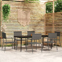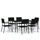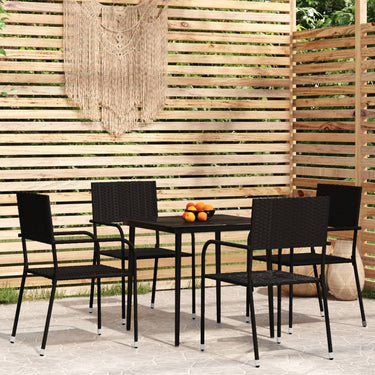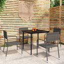 Profitez d'un bon repas ou d'un thé l'après-midi dans votre espace extérieur avec cet ensemble de salle à manger de jardin ! Ayant un design élégant, il deviendra le point central de votre jardin et de votre terrasse ! Cet ensemble de salle à manger d'extérieur pratique est doté d'un cadre en acier, ce qui le rend solide et robuste. Les chaises de jardin sont fabriquées en résine tressée résistante à l'eau et qui ne nécessite pas d'entretien, ce qui les rend parfaites pour une utilisation à l'extérieur. Ces chaises d'extérieur sont légères et peuvent être empilées pour gagner de la place lorsqu'elles ne sont pas utilisées. De plus, le dessus de table en verre lisse est facile à nettoyer à l'aide d'un chiffon humide et est excellent pour placer des repas, des boissons et d'autres objets décoratifs. Remarque : afin de prolonger la durée de vie des meubles d'extérieur, nous vous recommandons de les protéger avec une housse imperméable.