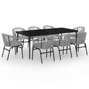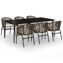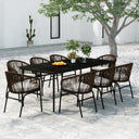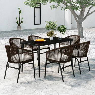 Créez une esthétique convaincante et uniforme dans votre espace extérieur avec cet ensemble de salle à manger de jardin ! Cet ensemble de repas de jardin est fait de cadre en acier enduit de poudre, ce qui le rend robuste et stable pour une utilisation quotidienne à l’extérieur. Le dessus de table en verre lisse est facile à nettoyer avec un chiffon humide et est parfait pour placer des repas, des boissons et d'autres objets décoratifs. Les chaises de patio sont en rotin PVC, ce qui les rend durables et résistantes aux intempéries et aux rayons UV. De plus, chaque siège est livré avec un coussin bien rembourré amovible pour plus de confort pendant votre temps de détente. Remarque : afin de prolonger la durée de vie des meubles d'extérieur, nous vous recommandons de les protéger avec une housse imperméable.