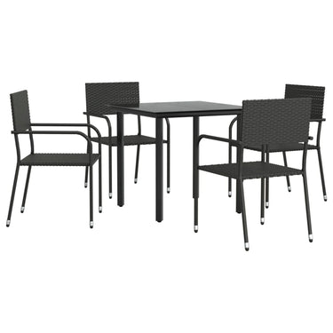 Ensemble à manger de jardin 5 pcs noir résine tressée et acier