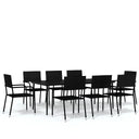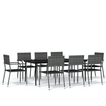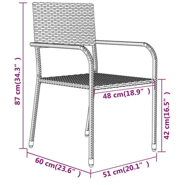 Profitez d'un bon repas ou d'un thé l'après-midi dans votre espace extérieur avec cet ensemble de salle à manger de jardin ! Ayant un design élégant, il deviendra le point central de votre jardin et de votre terrasse ! Cet ensemble de salle à manger d'extérieur pratique est doté d'un cadre en acier, ce qui le rend solide et robuste. Les chaises de jardin sont fabriquées en résine tressée résistante à l'eau et qui ne nécessite pas d'entretien, ce qui les rend parfaites pour une utilisation à l'extérieur. Ces chaises d'extérieur sont légères et peuvent être empilées pour gagner de la place lorsqu'elles ne sont pas utilisées. De plus, le dessus de table en verre lisse est facile à nettoyer à l'aide d'un chiffon humide et est excellent pour placer des repas, des boissons et d'autres objets décoratifs. Remarque : afin de prolonger la durée de vie des meubles d'extérieur, nous vous recommandons de les protéger avec une housse imperméable.