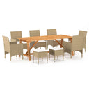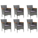 Créez une esthétique convaincante et uniforme dans votre espace extérieur avec cet ensemble de salle à manger de jardin ! La table de salle à manger est en bois d’acacia massif avec une finition à l’huile, ce qui la rend stable, durable et facile à entretenir. Dotés d’un cadre en acier enduit de poudre recouvert de résine tressée résistante aux intempéries, ces chaises et tabourets sont robustes et faciles à nettoyer. Conçue avec un dossier et des accoudoirs incurvés, la chaise à dîner a une forme plus ergonomique pour un confort maximal. Chaque siège est doté d'un coussin rembourré amovible pour ajouter du confort pendant votre temps de détente. Remarque importante : Nous vous recommandons de couvrir l'ensemble de salle à manger pendant la pluie, la neige et le gel pour une utilisation durable.