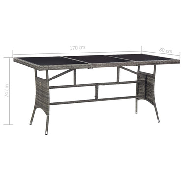 Créez un aspect convaincant et cohérent dans votre espace extérieur avec cet ensemble de salle à manger de jardin en résine tressée ! La table et les chaises à dîner sont en résine tressée sans entretien, ce qui les rend faciles à nettoyer avec un chiffon humide et parfaites pour une utilisation en plein air. Grâce à leurs cadres en acier, la table et les chaises sont stables et sûres. Le dessus de table en verre ajoute également une touche luxueuse à votre espace extérieur. De plus, les coussins de siège amovibles sont très confortables. Remarque : Nous vous recommandons de couvrir l'ensemble de salle à manger pendant la pluie, la neige et le gel pour une utilisation durable.