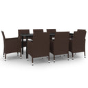 Ensemble à manger de jardin coussins 9 pcs Résine tressée Verre