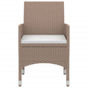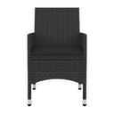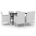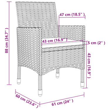 Cet ensemble élégant de salle à manger de jardin vous permet de passer des moments agréables et confortables avec votre famille et vos amis. Le cadre en acier enduit de poudre rend la table et les chaises robustes et durables. Fabriquées en résine tressée résistante aux intempéries et imperméable, les chaises sont faciles à nettoyer, résistantes à l'usure et adaptées à un usage quotidien. Le dessus de table en verre lisse est idéal pour poser des boissons, de la nourriture ou des objets décoratifs. De plus, le coussin de siège bien rembourré ajoute un confort supplémentaire aux chaises. Remarque : afin de prolonger la durée de vie des meubles d'extérieur, nous vous recommandons de les protéger avec une housse imperméable.