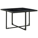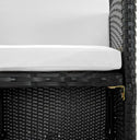 Notre ensemble de mobilier de jardin en résine tressée, au design élégant, sera un excellent choix pour les dîners en plein air ou la détente dans le jardin ou sur la terrasse ! Le mobilier de jardin est doté d'un cadre robuste en acier enduit de poudre, ce qui le rend très stable et durable. Grâce à la résine tressée résistante à l'eau, l'ensemble de salle à manger est facile à nettoyer, résistant à l'usure et adapté à une utilisation quotidienne en plein air. Le dessus de table en verre est également facile à nettoyer avec un chiffon humide. Les coussins d'assise souples noirs et épaississement rembourrés de mousse sont très confortables. Les housses de coussins en polyester ne nécessitant que peu d'entretien peuvent être facilement enlevées et lavées. L'ensemble de mobilier de jardin est facile à assembler. La livraison comprend 1 table, 4 chaises et 8 coussins. Remarque : nous recommandons de couvrir l'ensemble pendant la pluie, la neige et le gel.