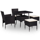 Ensemble à manger d'extérieur 5pcs Noir Résine tressée et verre