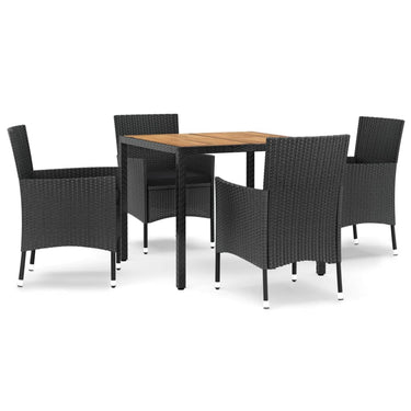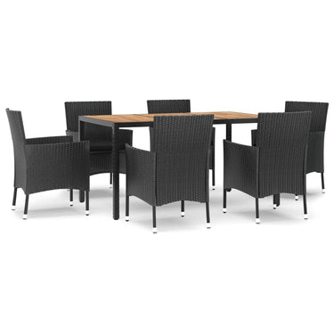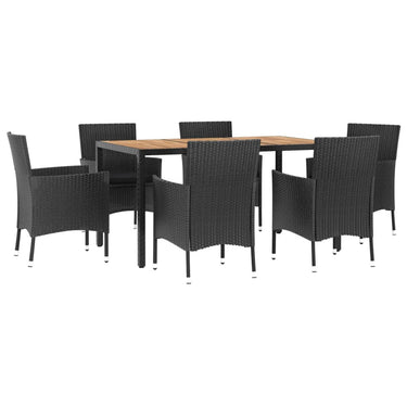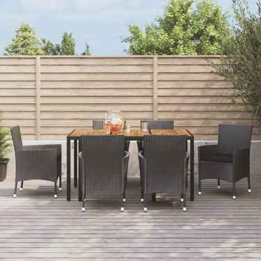 Ensemble à manger jardin 9pcs et coussins noir résine tressée