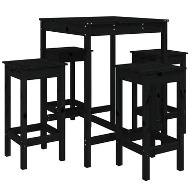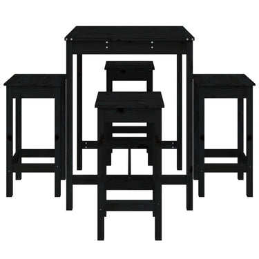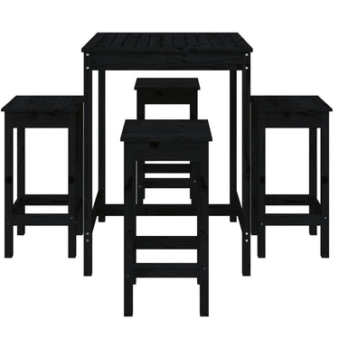 Ensemble de bar de jardin 5 pcs noir bois de pin massif