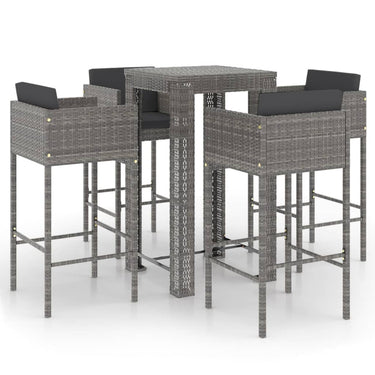 Ensemble de bar de jardin 5 pcs et coussins Résine tressée Gris